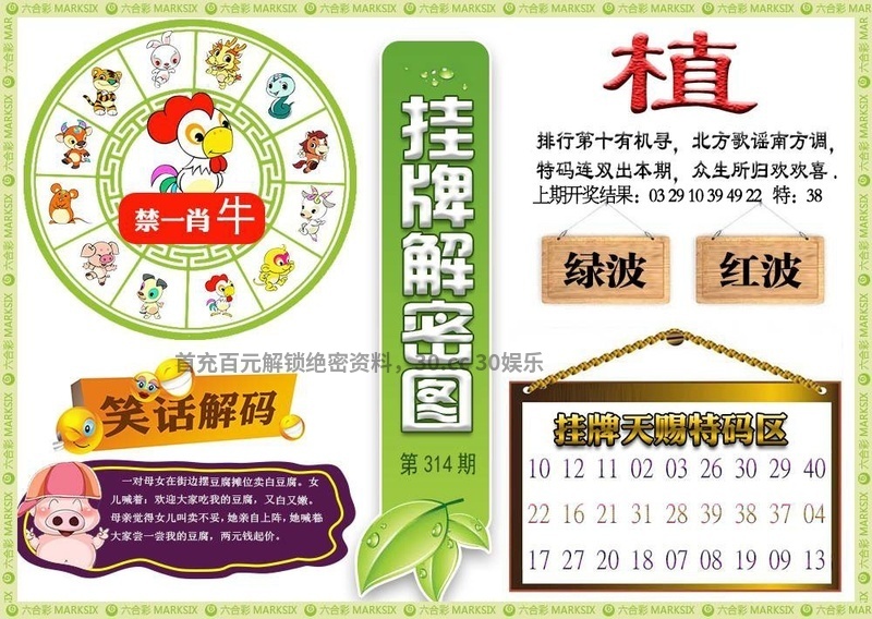 | 314期六肖 | 马牛鼠羊猴兔 | 开:羊23 |
