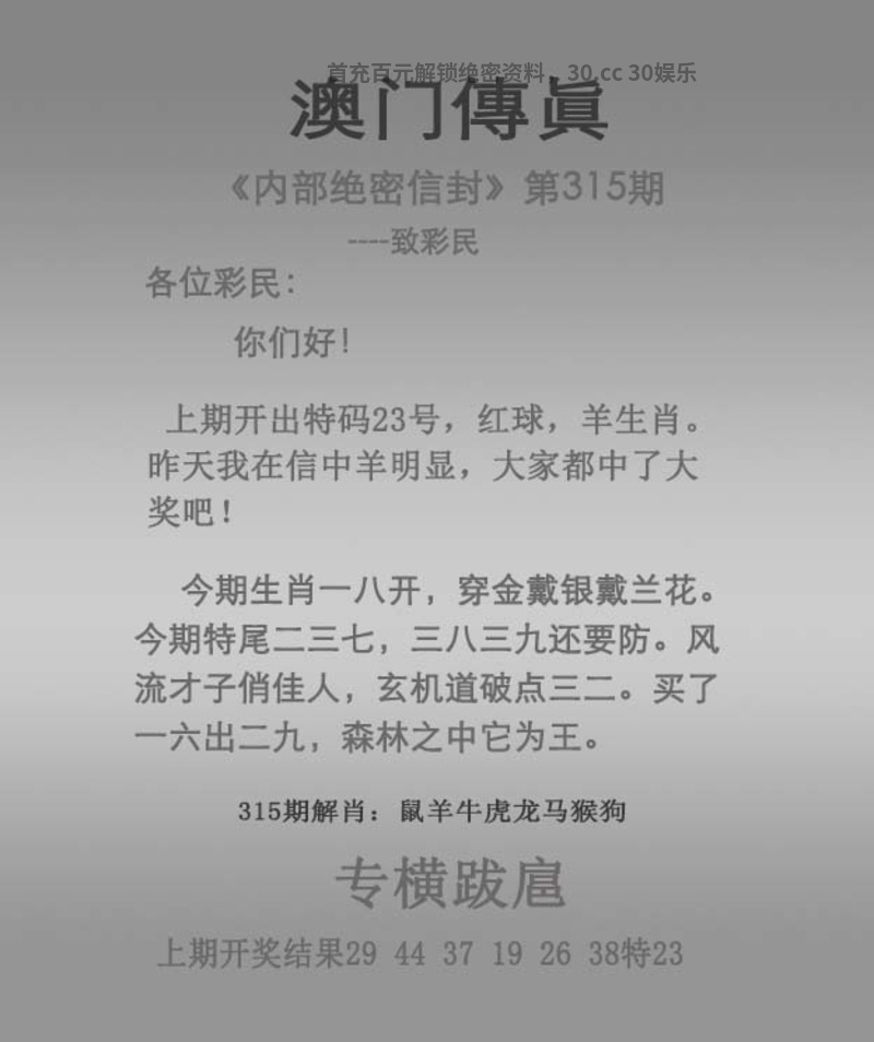 | 315期:绝杀三肖【龙兔马】开虎04准 |