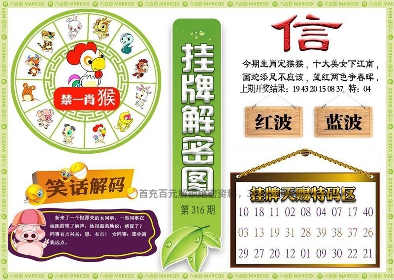 315期:今期生肖一八开,穿金戴银戴兰花。今期特尾二三七,三八三九还要防。风流才子俏佳人,玄机道破点三二。买了一六出二九,森林之中它为王。 【澳门挂牌主看】鼠羊牛虎龙马猴狗 【澳门挂牌主看】红波+蓝波 |