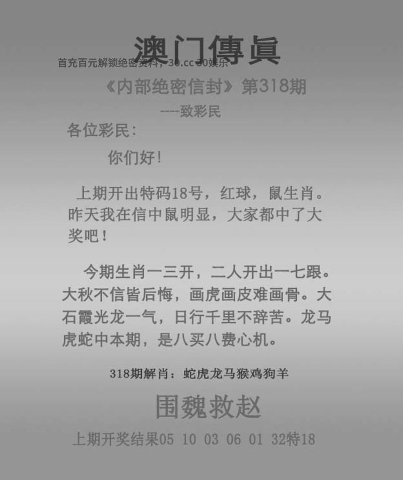 | 318期:绝杀三肖【马虎鸡】开鼠06准 |